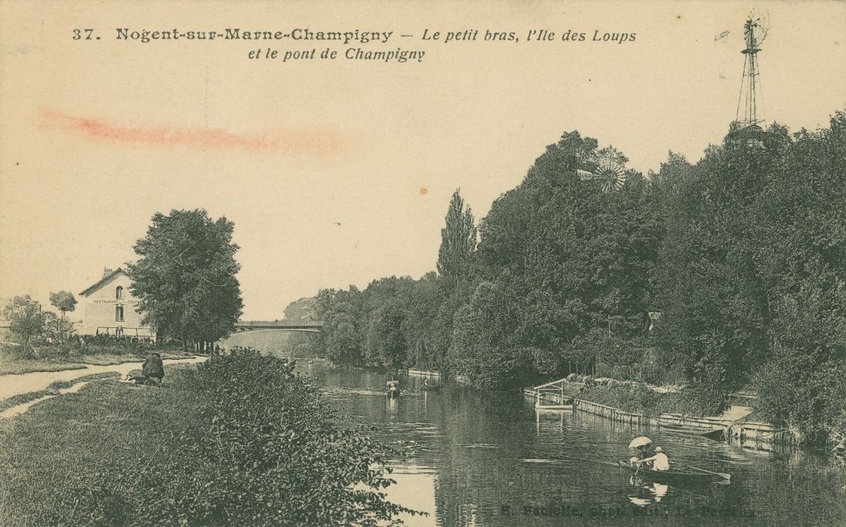 Le petit bras, l'île des loups et le pont de Champigny