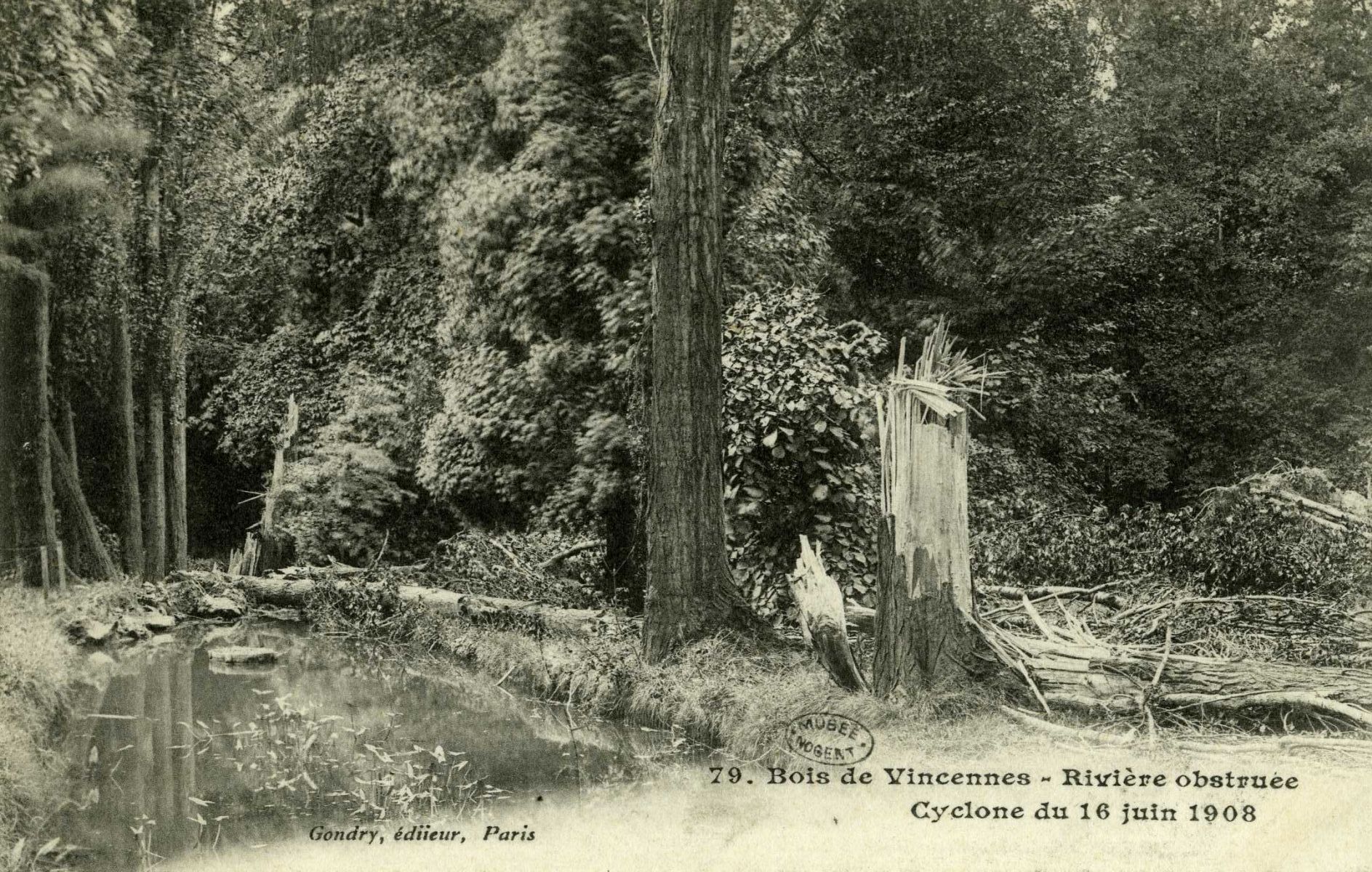La Rivière du Lac de Saint-Mandé obstruée par la chute des arbres - Cyclone du 16 juin 1908
