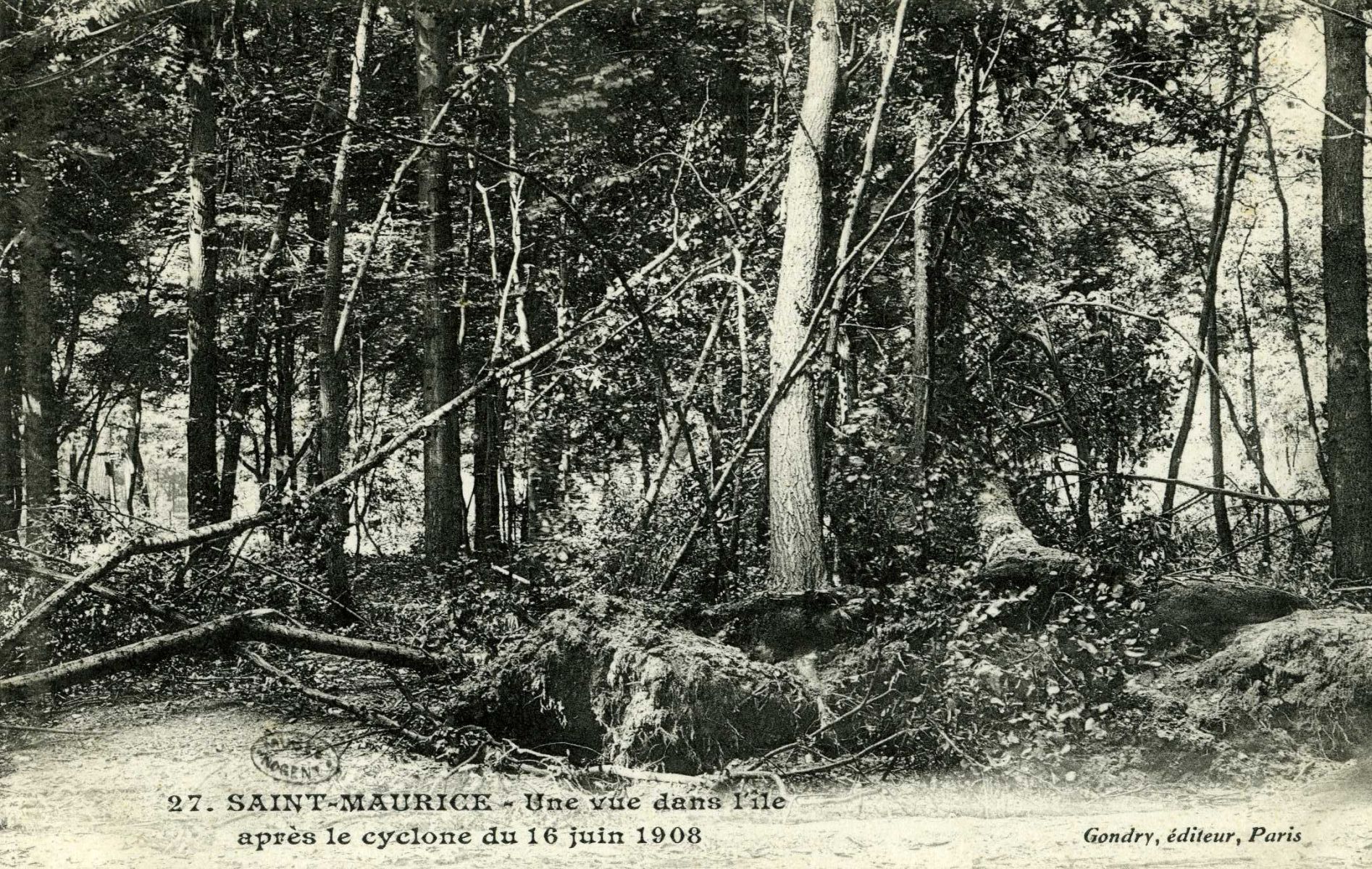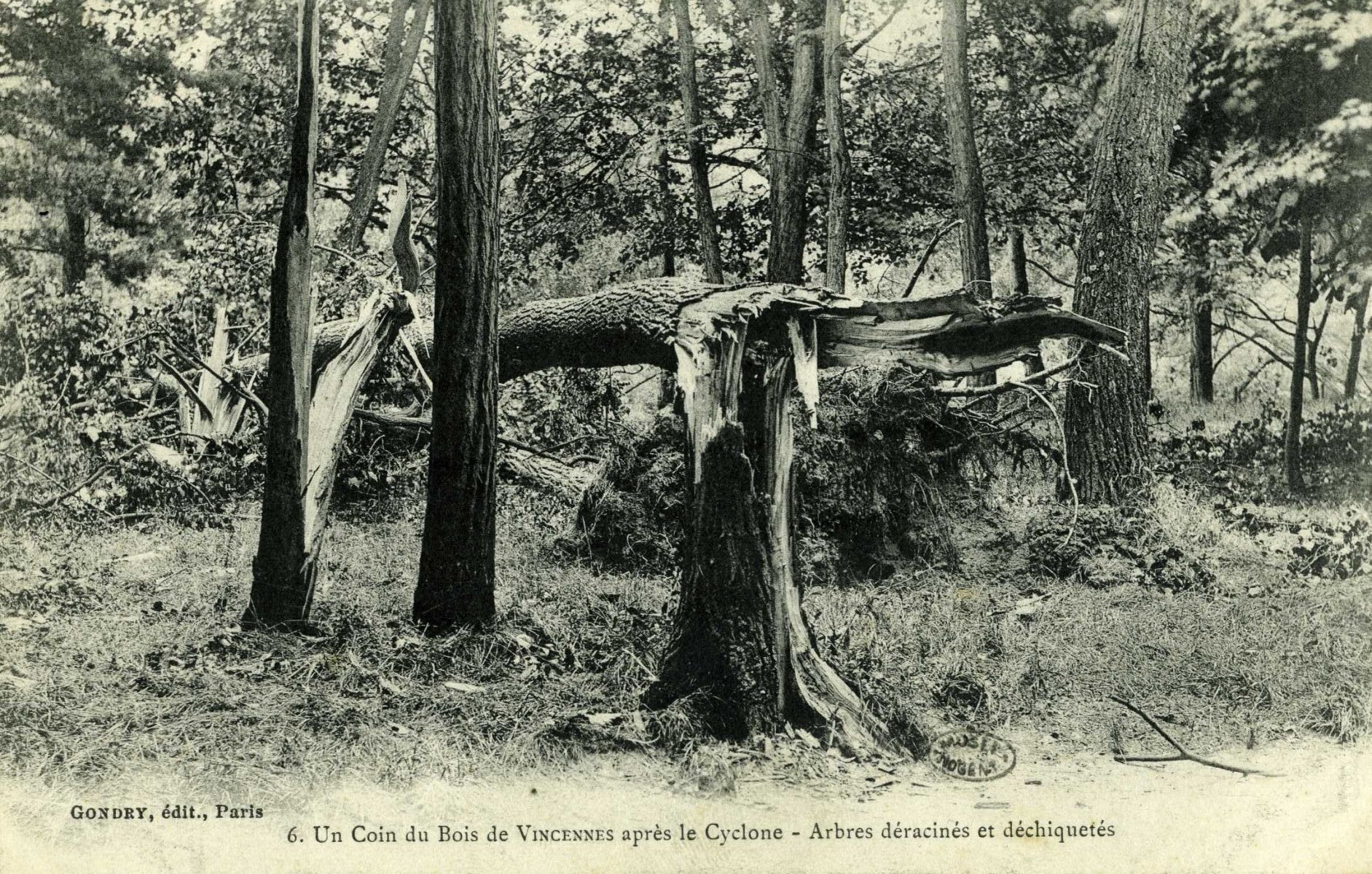 Arbres déracinés et déchiquetés - Cyclone du 18 juin 1908