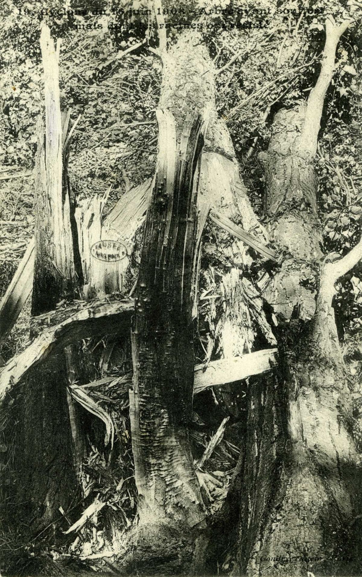 Cyclone du 16 juin 1908 - Arbre ayant souffert mais dont les racines ont résisté