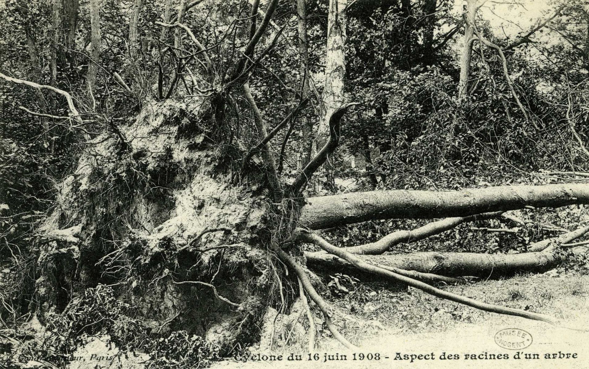 Cyclone du 16 Juin 1908 - Aspect des racines d'un arbre