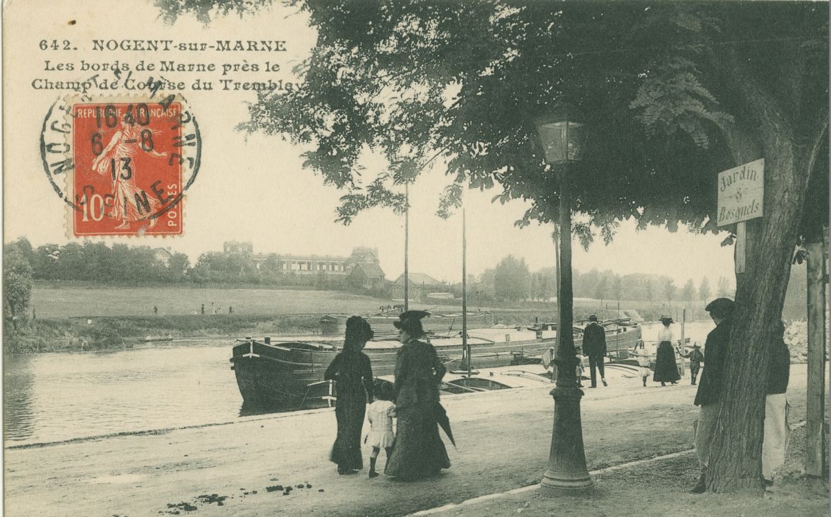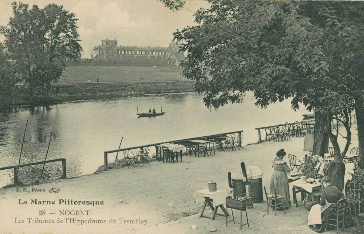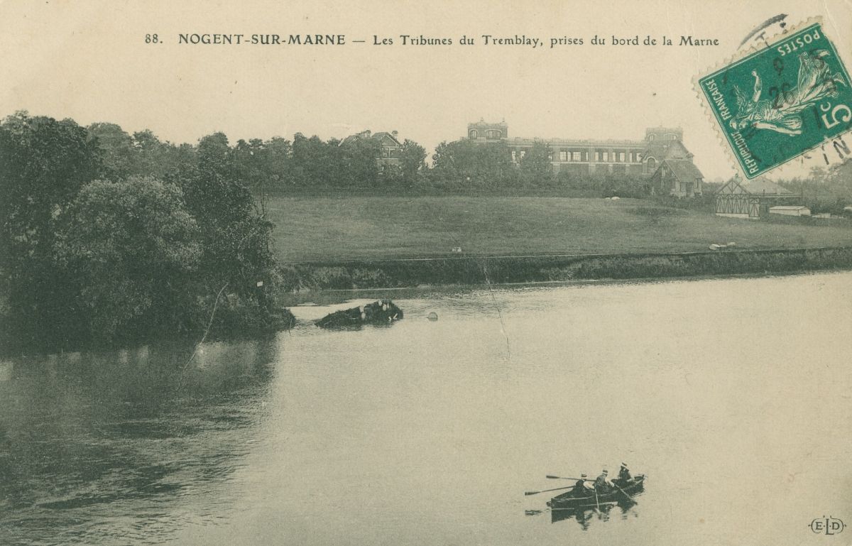 Les Tribunes du Tremblay, prises du bord de la Marne