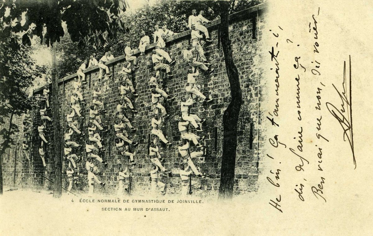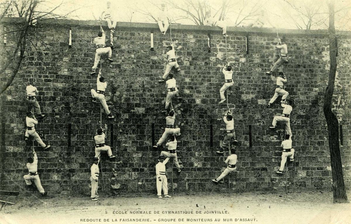 Ecole Normale de Gymnastique de Joinville - Escalade d'un mur en campagne