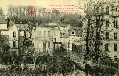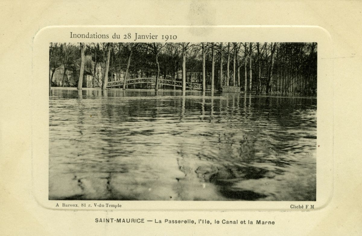 Inindations du 28 janvier 1910 - La passerelle, l'île, le canal et la Marne