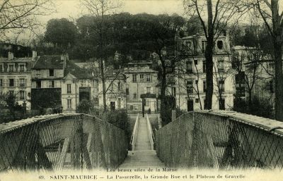 La passerelle, la grande rue et le plateau de Gravelle