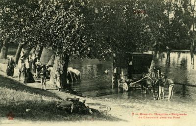 Bras du Chapître - Baignade de chevaux près du Pont