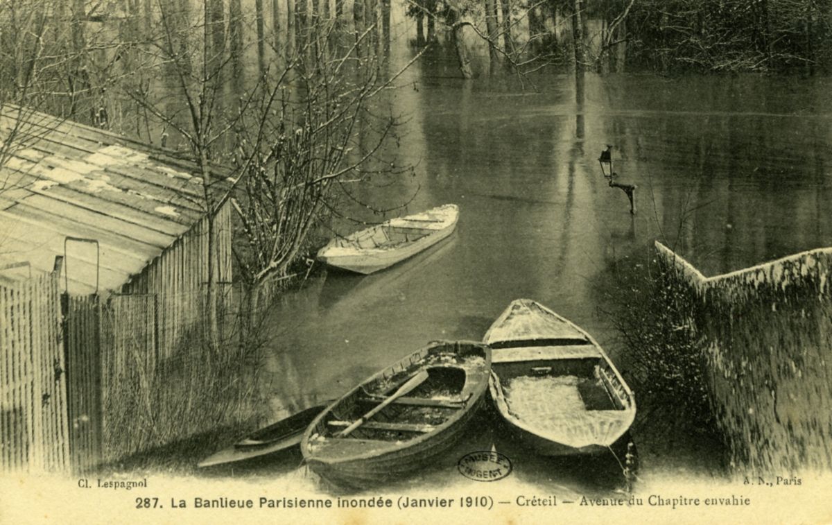 La banlieue parisienne inondée (janvier 1910) - Créteil - L'eau envahit le chemin du Chapitre