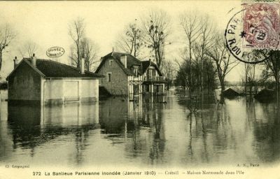 La banlieue parisienne inondée (janvier 1910) - Créteil - Maison normande dans l'île