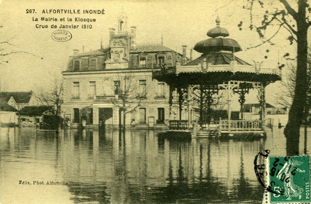 Alfortville inondé - La Mairie et le kiosque - janvier 1910