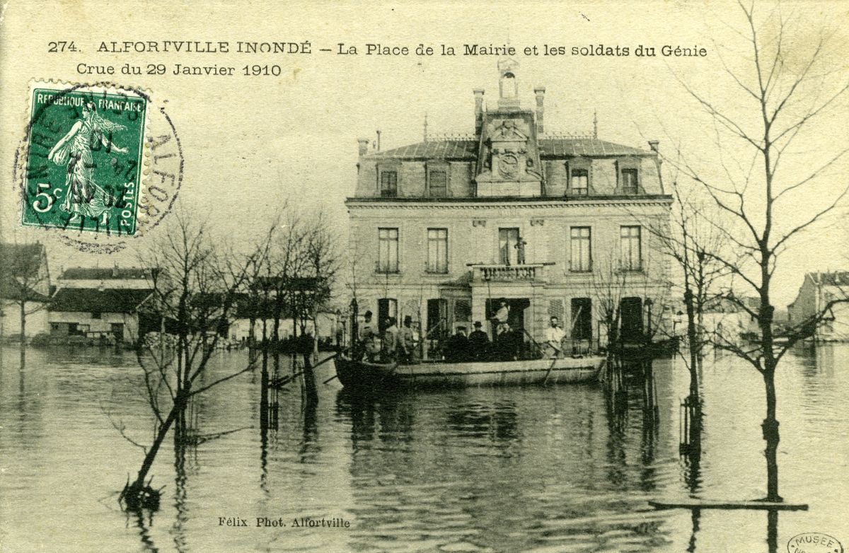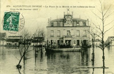 Alfortville inondé - La mairie et les soldates du génie - crue du 29 janvier 1910