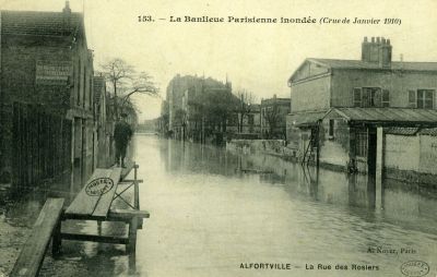 La banlieue parisienne inondée - crue de janvier 1910 - Alfortville, le rue des rosiers
