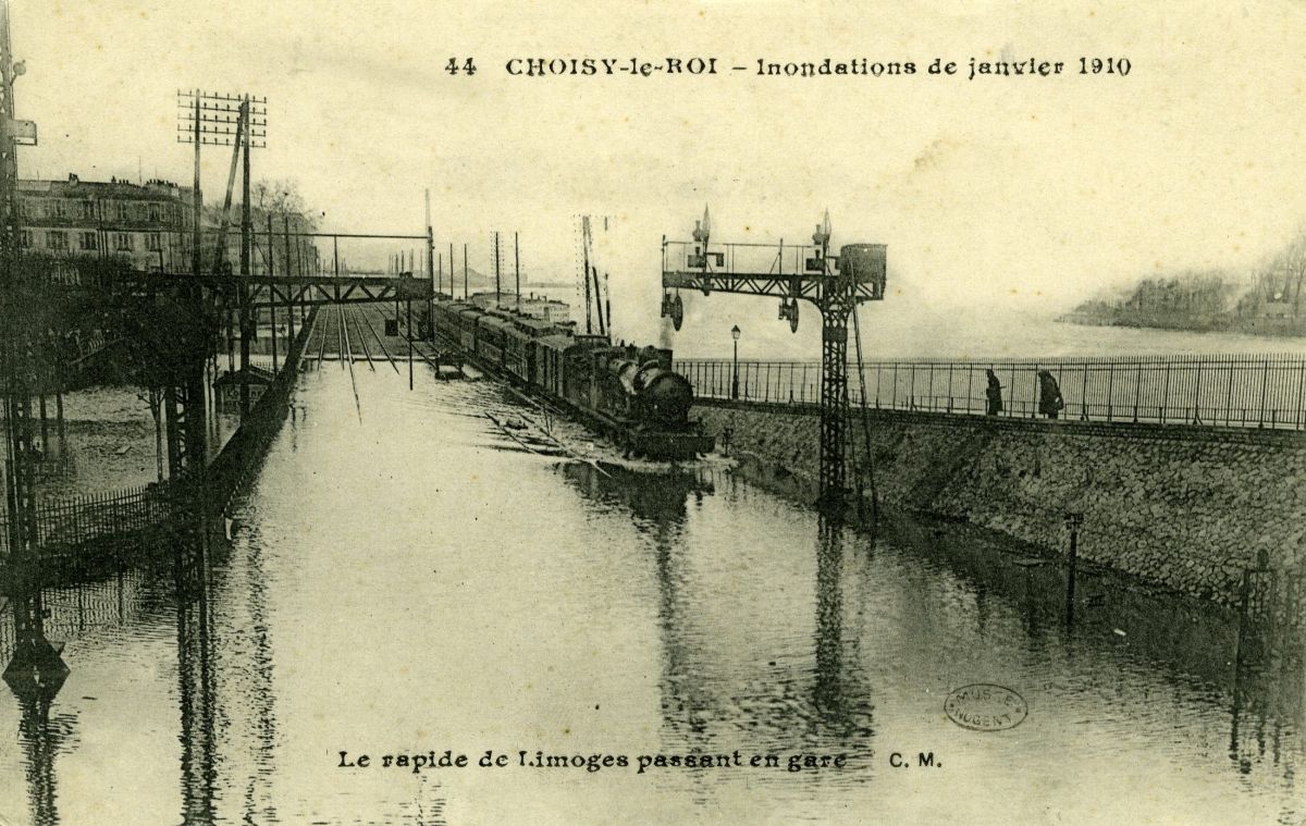 Inondations de Janvier 1910 - Le Rapide de Limoges passant en Gare