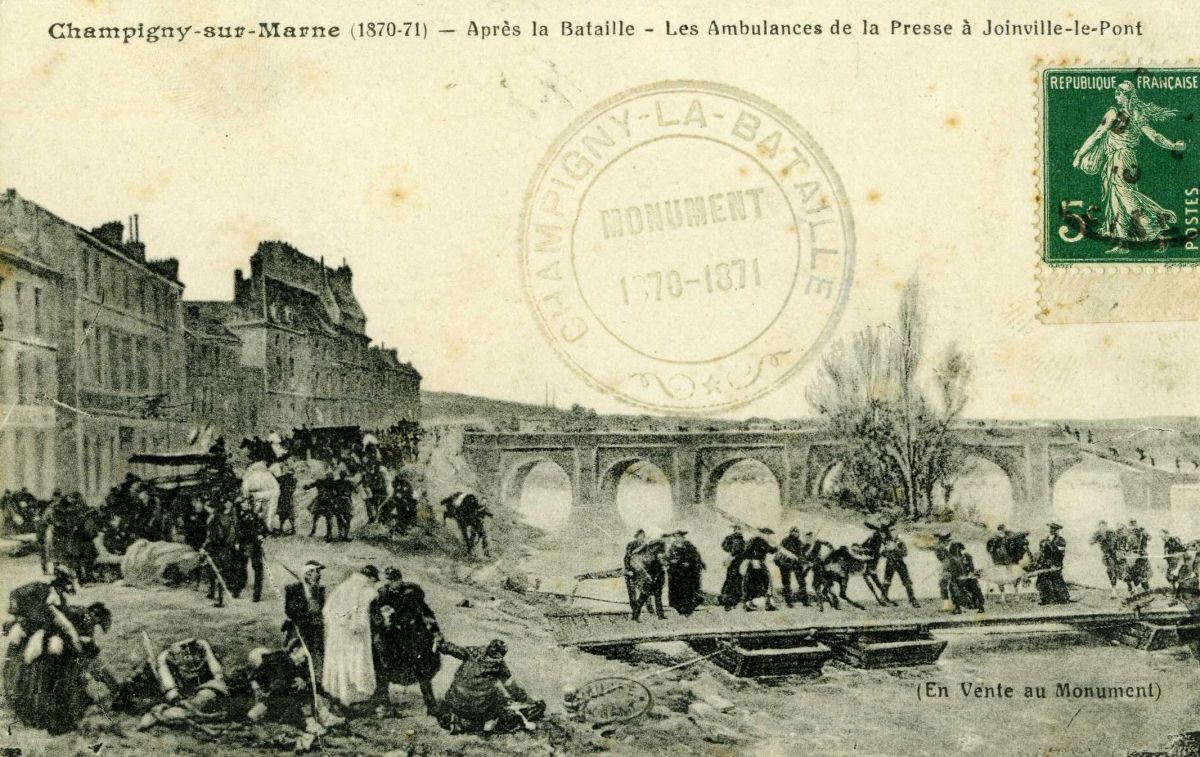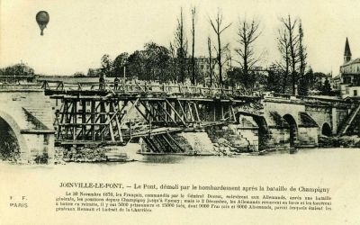 Le pont démoli après la bataille de Champigny