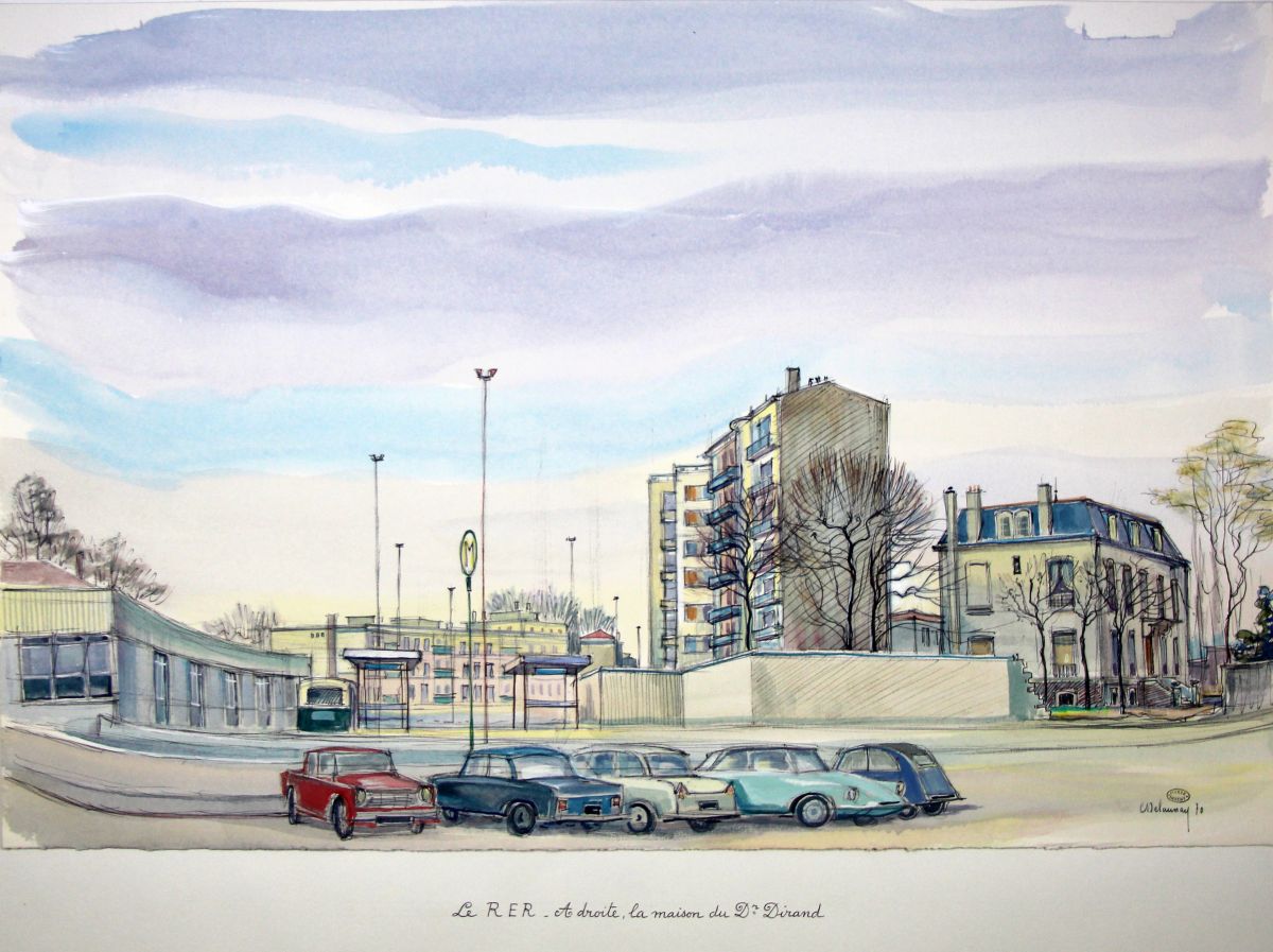 Le RER. A droite, la maison du Docteur Dirand