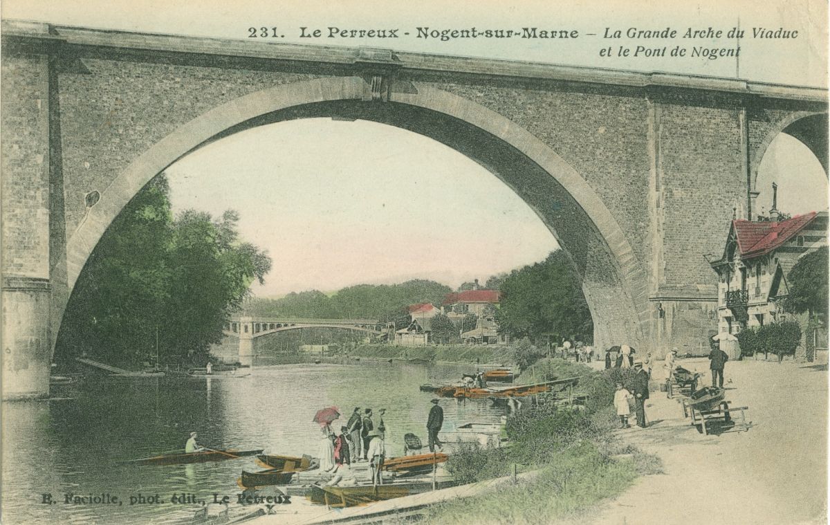 La grande arche du viaduc et le pont de Nogent